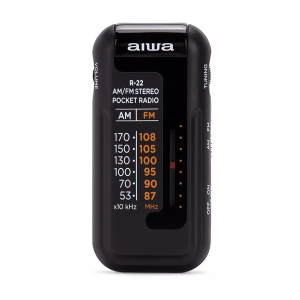 Egy könnyen kezelhető kis zsebrádió, mely mindig nálunk lehet, bárhová is menjünk, ez az AIWA R-22. Akár idősebbek részére is, akik szeretik a hagyományos dolgokat. AM/FM rádióadókat tudunk rajta beállítani manuálisan. Hogy mindig biztonságosan magunknál tudjuk a készüléket, a hátoldalára egy csipeszt helyeztek el, így könnyedén akár az övünkre fel tudjuk csíptetni, és biztonságosan tudjuk használni. A mellékelt fülhallgatóval pedig tökéletes hangzásban lehet részünk, amit úgy alakítottak ki, hogy a csatlakozó vége egyenes, így felcsíptetve az övünkre az nem fog minket zavarni. Az oldalán találunk egy hangerőszabályzót is, így tudjuk halkítani, hangosítani a rádióadókat. 2 db AAA típusú elemmel működik (tartozék), mely könnyen cserélhető. Élvezzük kedvenc rádióadónkat az AIWA R-22 zsebrádióval, bármerre is járjunk. Technikai jellemzők