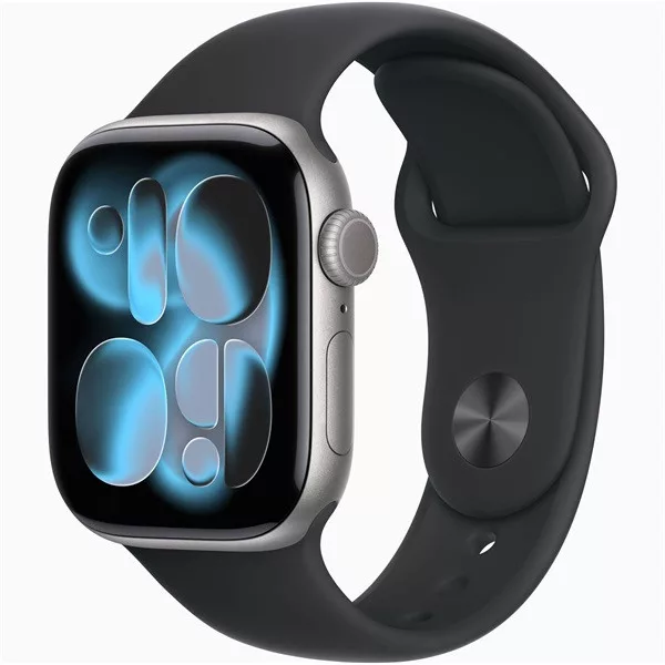 Apple Watch S11 GPS-es (42mm) asztroszürke alumínium tok, fekete S/M sportszíjas okosóra