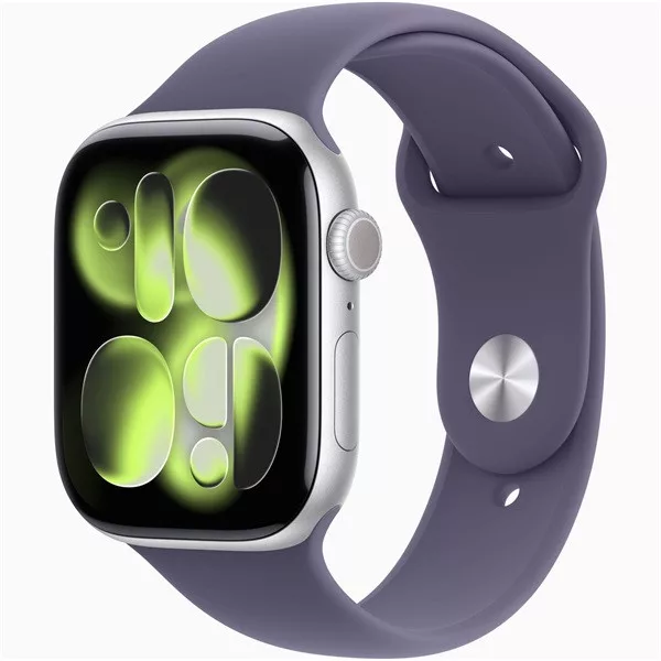 Apple Watch S11 GPS-es (46mm) ezüst alumínium tok, ködös lila S/M sportszíjas okosóra
