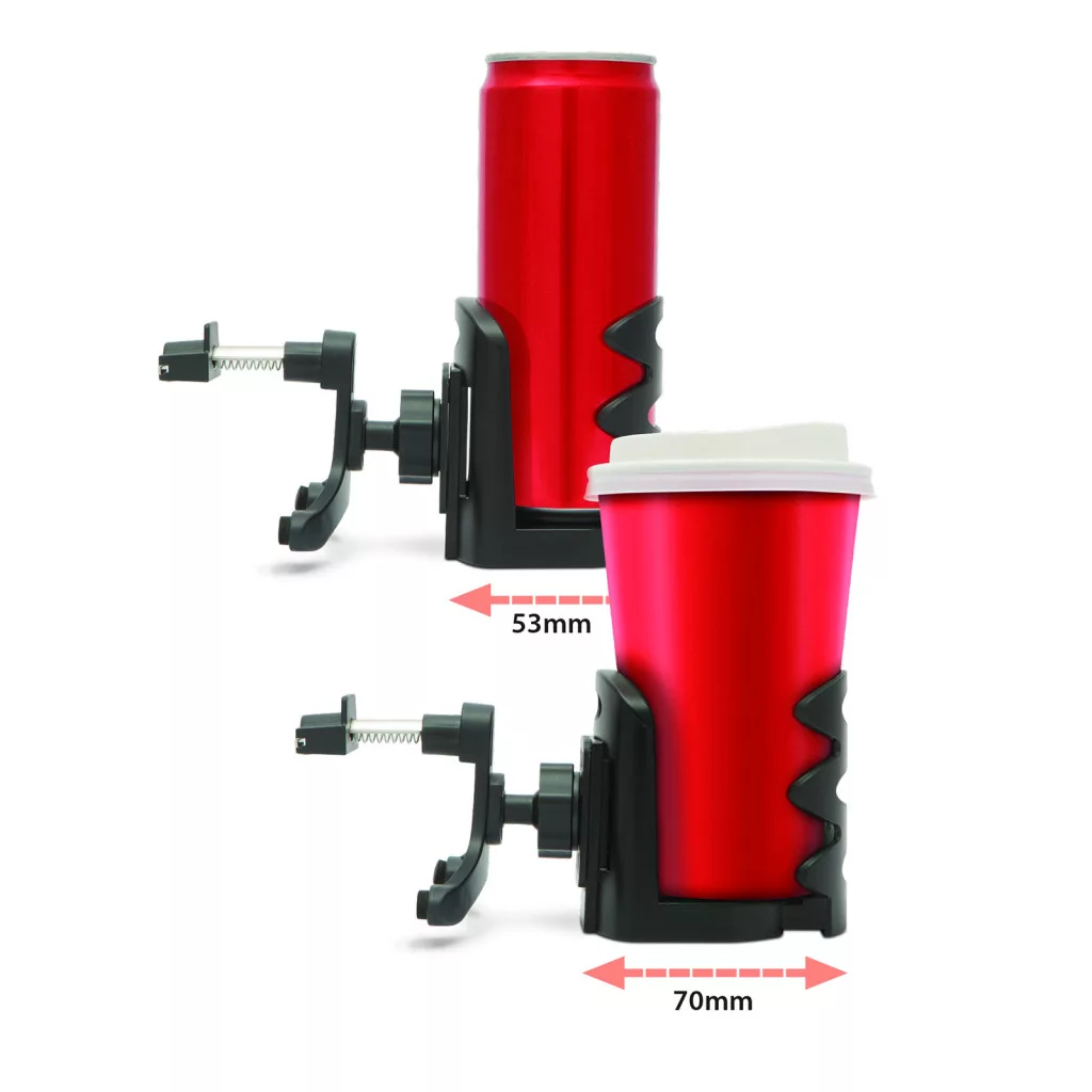 A tartó keresztmetszete állítható a pohár/üveg/doboz méretéhez (53 - 70 mm).