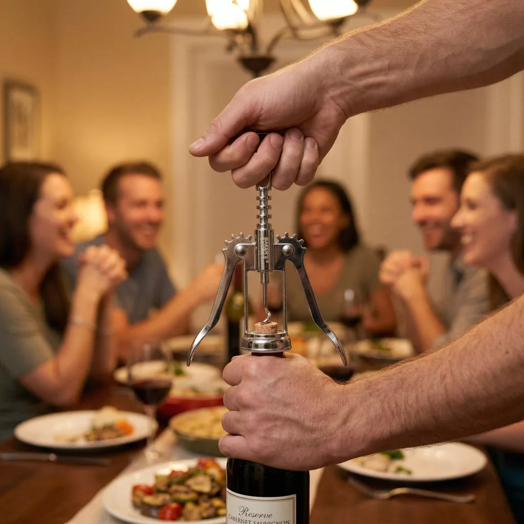 Dobja fel italfogyasztási élményeit ezzel a fém dugóhúzóval, amely megbízható és praktikus eszköz minden borosüveg könnyű nyitásához. A klasszikus szárnyas mechanizmus egyszerűvé teszi a dugók eltávolítását: a spirál könnyen behatol a parafába, a karok lenyomásával pedig a dugó gyorsan és tisztán kihúzható. A csúszásmentes fogórész kényelmes kezelést garantál. Stílusos, ezüstszínű megjelenésével tökéletes választás otthonra, vendéglátásba vagy ajándéknak is.