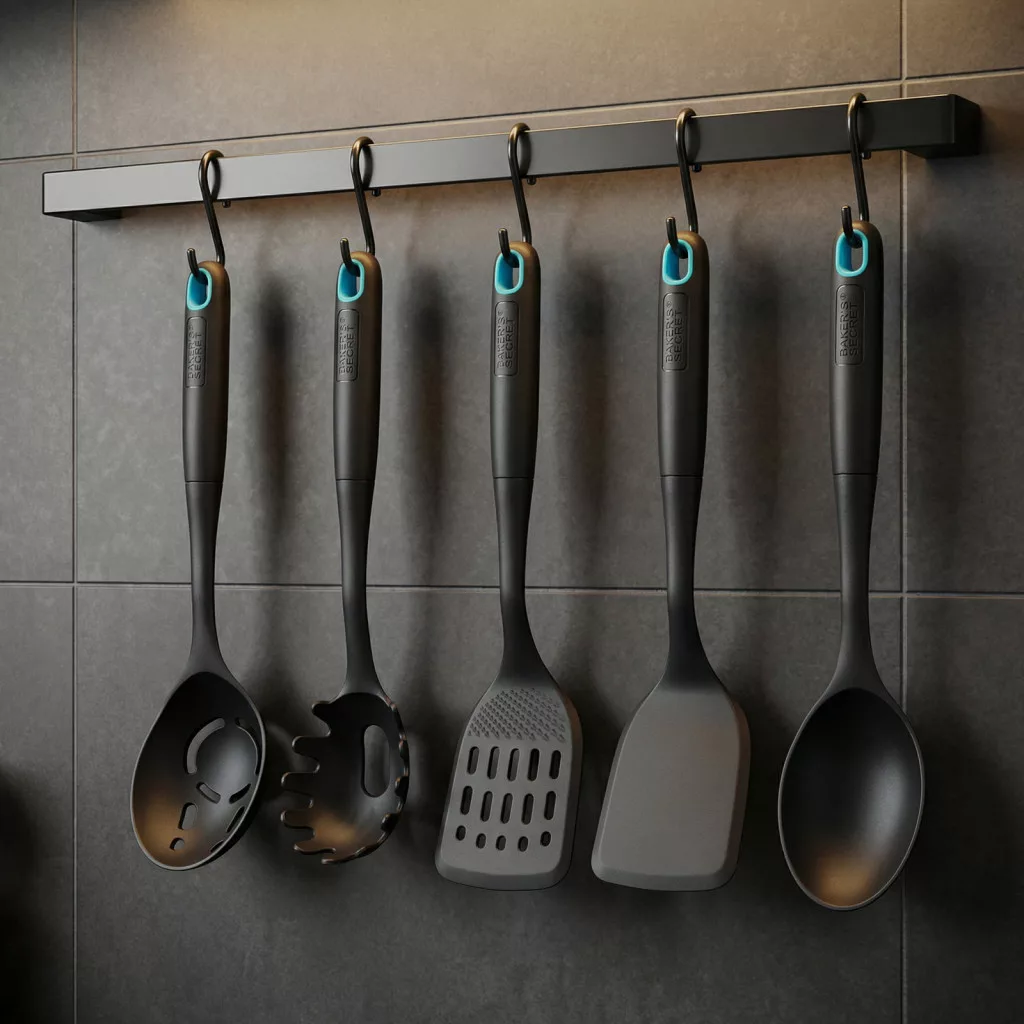 Ez az 5 részes konyhai eszközkészlet minden háztartás nélkülözhetetlen segítőtársa, amely megkönnyíti a mindennapi főzést és tálalást. A szett tartalmaz lapátot, lyukacsos lapátot, kanalat, lyukacsos kanalat és tésztaszedő villát – mindegyik hőálló nylonból készült, így biztonságosan használható tapadásmentes edényeken is, karcolás nélkül.