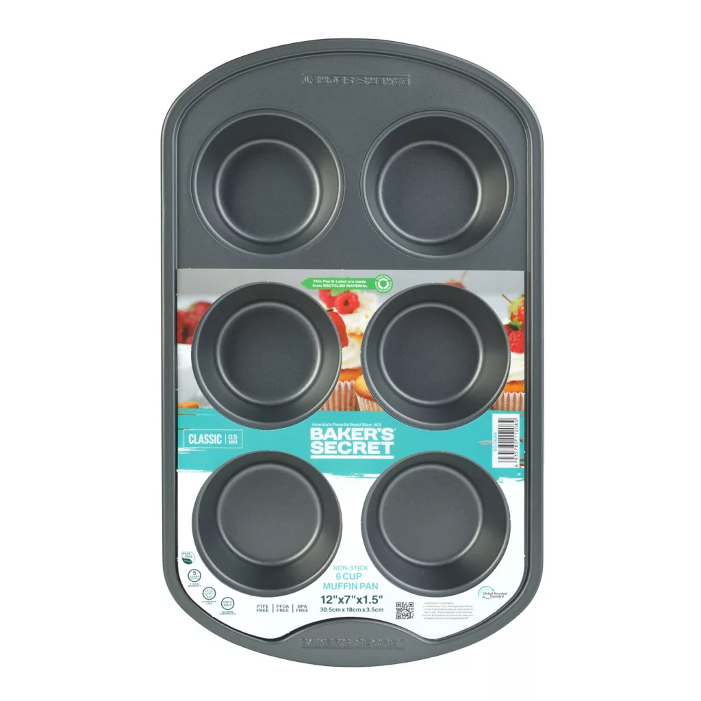 Baker’s Secret Classic Line 6 darabos muffin sütőforma - 31,3 x 18,6 x 3,6 cm