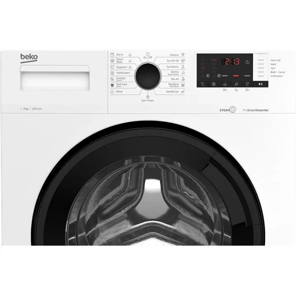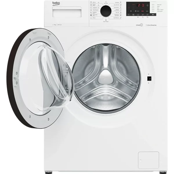 TermékleírásKeskeny mélység akár 6/7 kg ruhaneműhözA keskeny mosógép kisebb vázmélységgel rendelkezik, viszont ez nem jelenti azt, hogy csak néhány ruhadarab mosására alkalmas. A Beko keskeny mosógép akár 6/7 kg ruhaneműt is képes kimosni, így megfelelő lehet akár egy egész család számára.Energiatakarékos készülék. Környezet- és pénztárcabarátA Beko mosógépeket a lehető legkevesebb energiafogyasztással tervezték. Így nemcsak pénzt takarítanak meg Önnek, de a környezetet is védik.SteamCure gőzfunkció. A gőz erejével a foltok ellenA SteamCure gőz technológia behatol a szövetek belsejébe, és folteltávolító és extra előmosás nélkül távolítja el a nem csak a makacs foltokat, de az allergének, baktériumok és vírusok akár 99,9%-át is. A centrifugálás során megakadályozza a gyűrődések kialakulását, ami megkönnyíti a vasalást, illetve mosás nélkül frissíti az egyébként tiszta ruhaneműt is.Daily Xpress program. Mosás teljes kapacitással mindössze 28 perc alattA Daily Express program képes kimosni egy teljes töltetet mindössze 28 perc alatt. Ideális a hétköznapi, enyhén szennyezett ruhaneműk mosására.Műszaki adatokTöltet az ECO 40-60 fokos programhoz: 7 kgA energiaosztályProSmart inverteres motorUtólagos ruhabehelyezési funkcióKeskeny kivitel (49 cm)Centrifuga: 1200 fordulat/percCentrifugahatékonysági osztály: BCentrifuga sebesség kiválasztásSúlyozott energiafogyasztás: 44 kWh/100 ciklusECO 40-60 program hossza teljes töltet mellett: 3:27 hSúlyozott vízfogyasztás üzemi ciklusonként: 43 literProgramok száma: 15Opciók: előmosás, extra öblítés, gyors program, Gőzkezelés, Automata vízadagoló rendszer, Hátralévő idő kijelzés, Késleltetés 0-19 h, Hőmérséklet kiválasztás, centrifuga kiválasztás, Dobtisztítás, GyerekzárZajkibocsátási osztály az ECO 40-60 program centrifugálási fázisában: BZajszint: 74 dBMéret: 84,5 x 60 x 49 cm