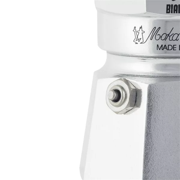 A szabadalmaztatott Bialetti biztonsági szelep egyszerű és könnyű tisztíthatóságot biztosít.