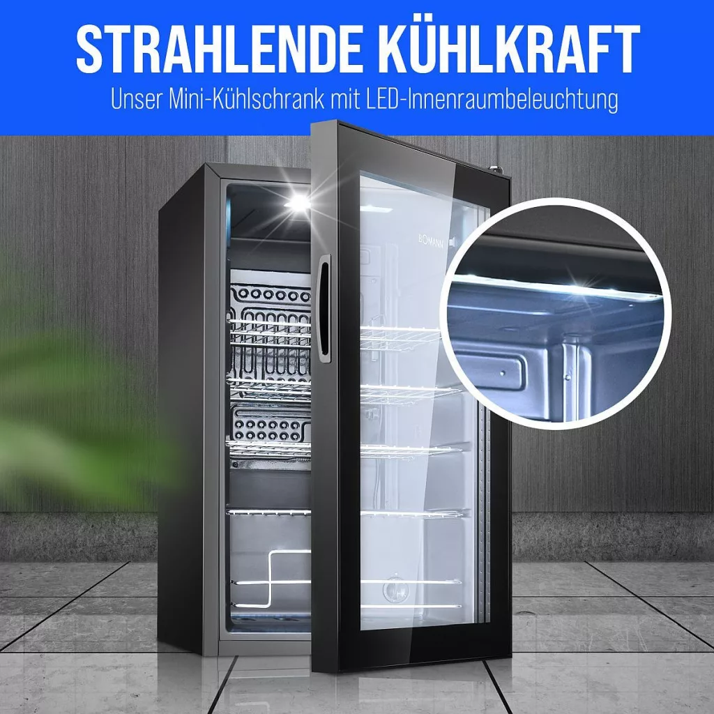 A LED-es belső világítás hatékonyan helyezi a reflektorfénybe a mini hűtőszekrényben lévő italokat, és tiszta kilátást biztosít – tökéletes áttekintést még gyenge fényviszonyok mellett is