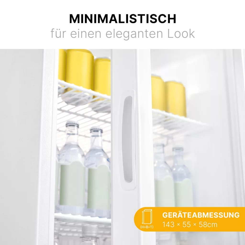 A Bomann® KSG 7289 üvegajtós hűtőszekrény elegáns fekete-fehér színben kapható, tökéletes megoldást kínálva az italok tárolására és bemutatására.