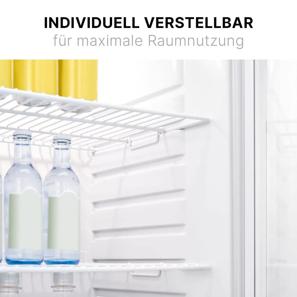 A Bomann® KSG 7289 üvegajtós hűtőszekrény ideális italhűtő a kereskedelemben. A nagyvonalú, 245/244 literes bruttó/nettó kapacitásával bőséges helyet biztosít az italok számára. A folyamatos hőmérséklet-szabályozás lehetővé teszi a tökéletes hűtési hőmérséklet beállítását +2°C és +12°C között.