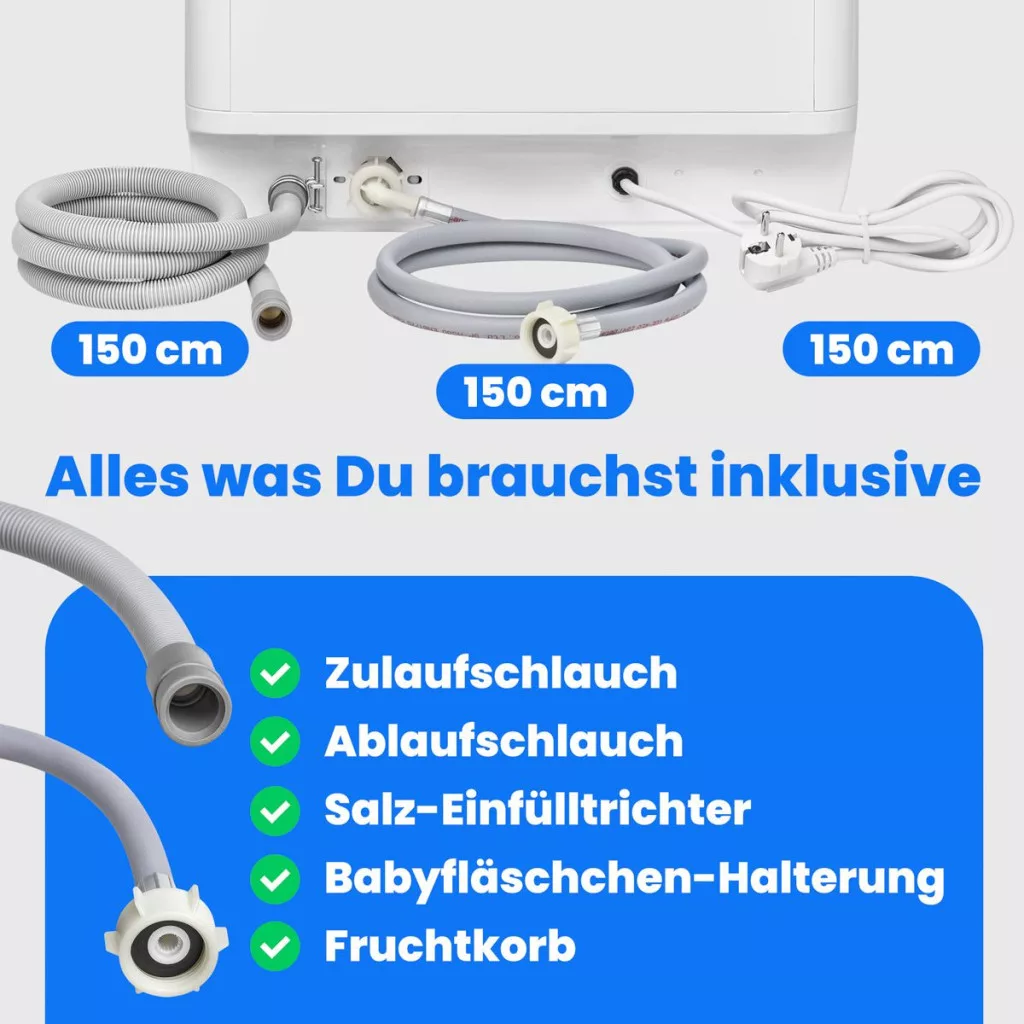 Beleértve a bemeneti és lefolyó tömlőt, sótöltő tölcséret