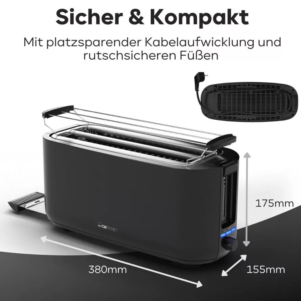 Tapasztalja meg a finom reggelit reggelről reggelre a Clatronic 4 szeletes kenyérpirítóval, amely nemcsak hatékony, hanem rendkívül sokoldalú is.