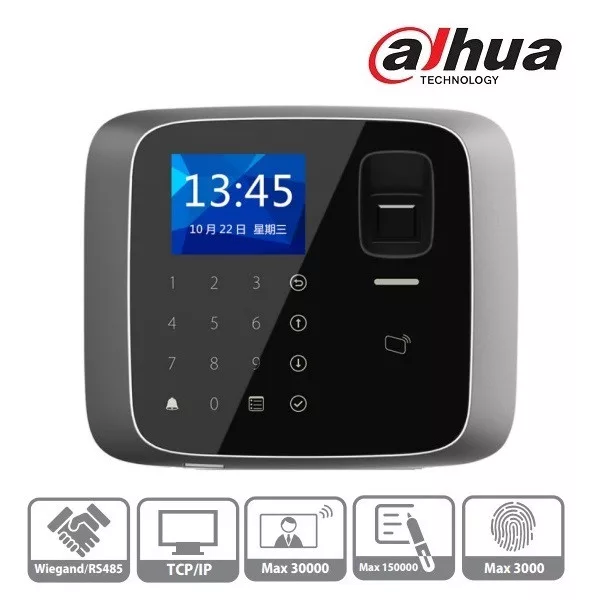 Dahua ASI1212A(V2) 2,4"TFT, RFID(13,56MHz)+kód+ujjlenyomat, RS-485/Wiegand/RJ45, I/O, IP55 beléptető vezérlő