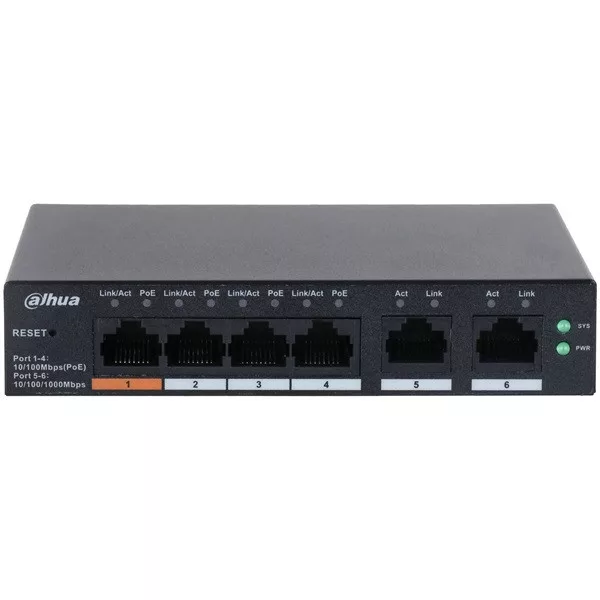 Dahua CS4006-4ET-60 4x10/100 Mbps PoE + 2x10/100 Mbps uplink/60W/Cloud Managed PoE Switch