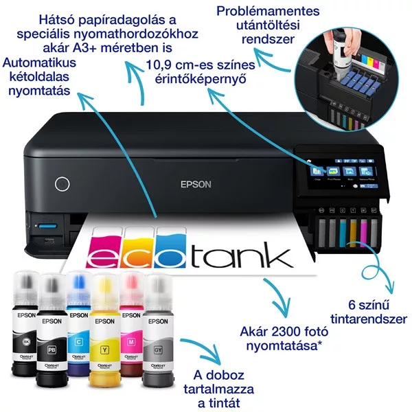 Epson EcoTank L8180 fotónyomtató MFP, WiFi/USB/LAN, 1800 fotóra elegendő tinta a dobozban