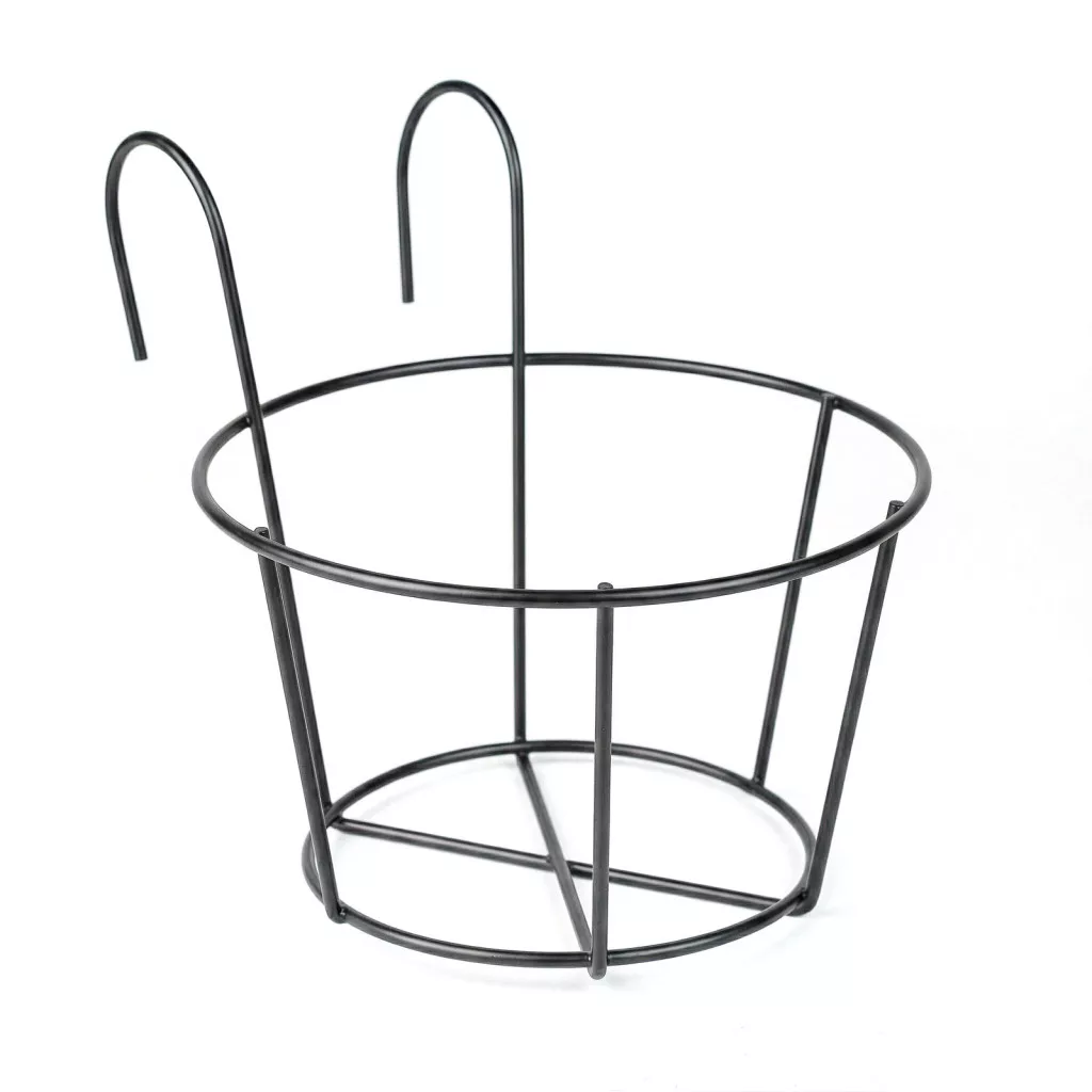 Erkélykorlátra akasztható fém kosár - virágcserepek rögzítéséhez - 18 cm - fekete