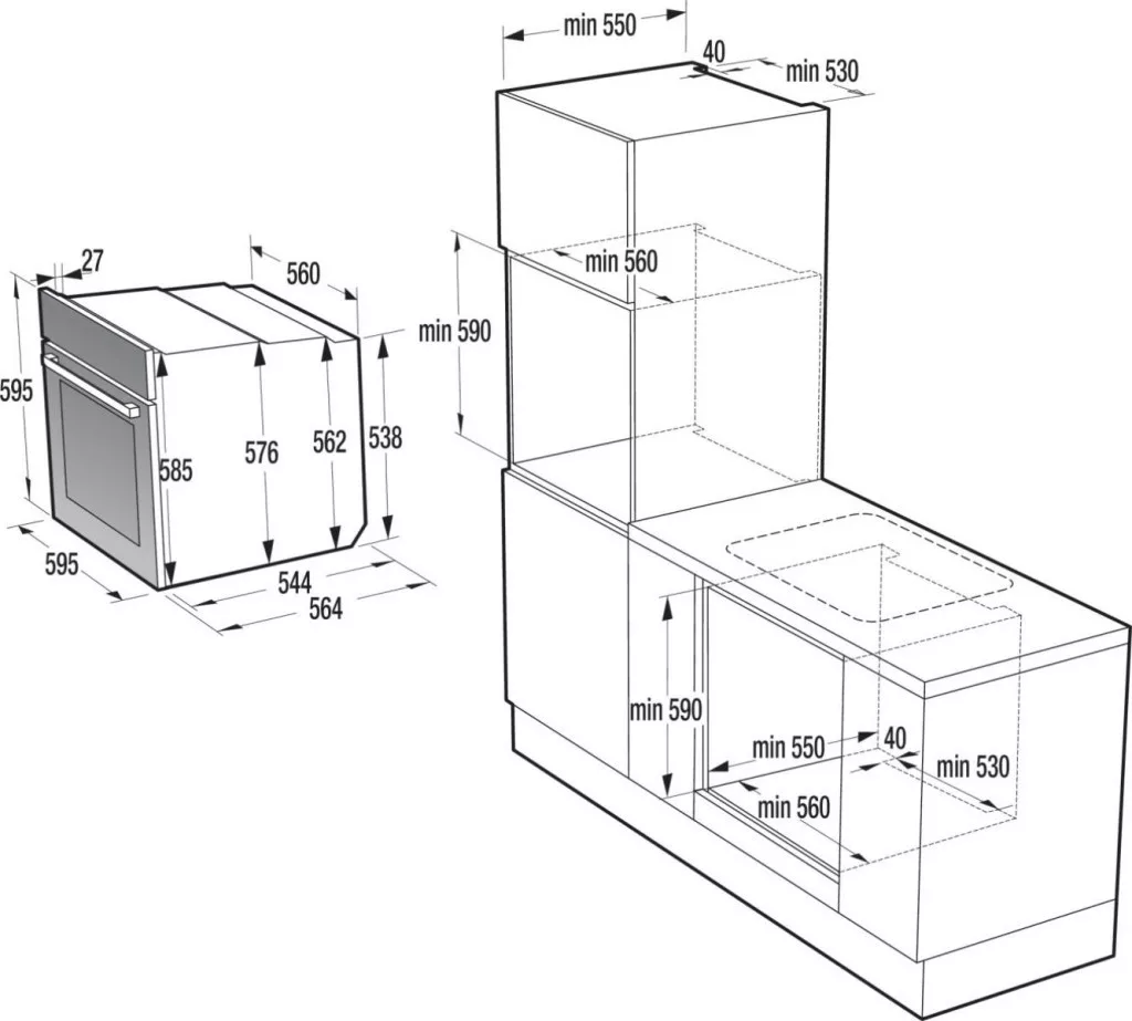 A készülék telepítéséhez szükséges minimum szélesség560 mm