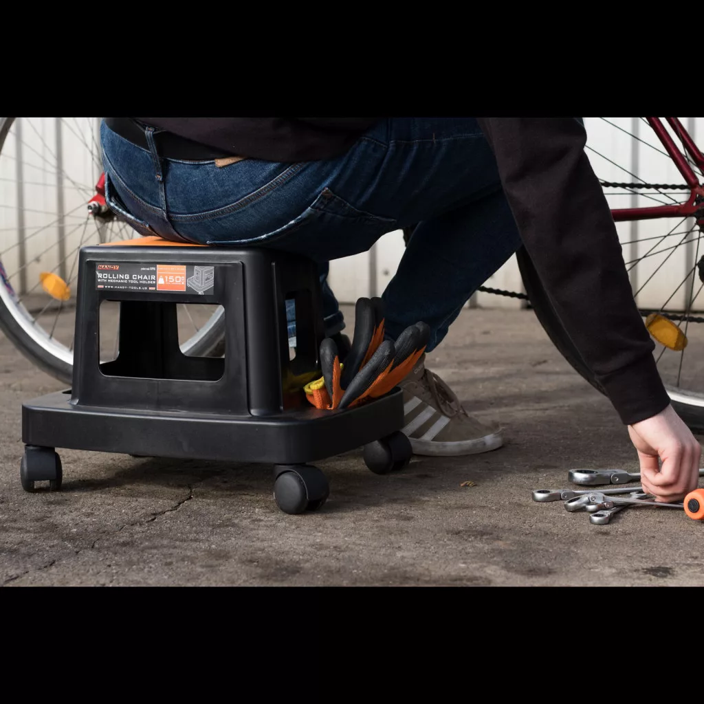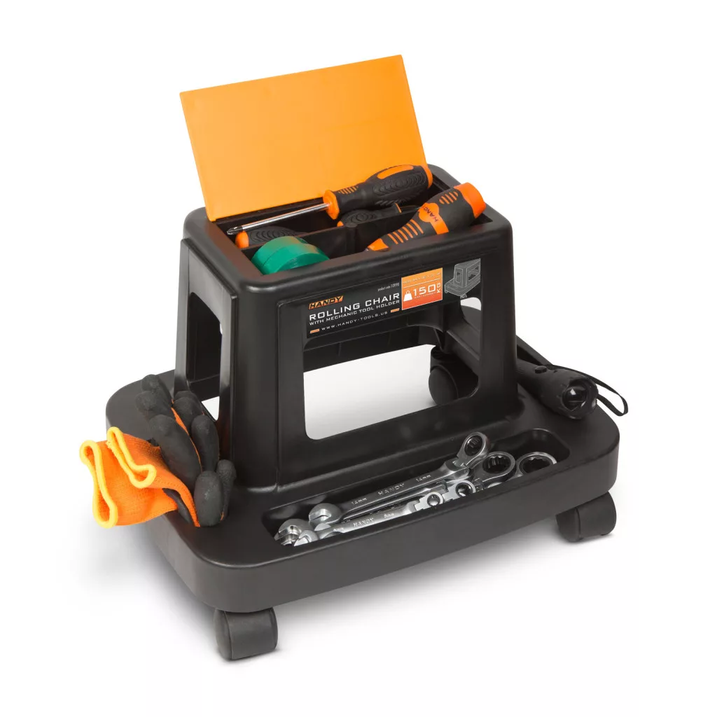 Ennek a strapabíró, műanyag gurulós széknek köszönhetően könnyebb a munkavégzés. A munka során szükséges eszközök, szerszámok, csavarok mindig kéznél vannak, így nem szükséges felállni és otthagyni egy-egy munkafolyamatot. A 4 forgatható, görgőnek köszönhetően minden irányban képes gurulni, rögzítőfékkel nem rendelkezik. Ideális felhasználás lehet például: járműszerelő műhelyekben, villanyszerelésnél, radiátorok, biciklik karbantartásánál.