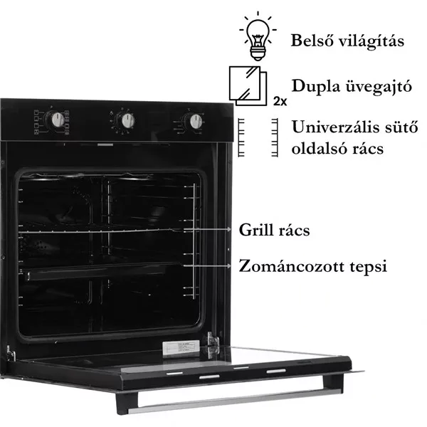 Hausberg HB-8053NG fekete, beépíthető, sütőtér:71L, grill, légkeveréses sütő