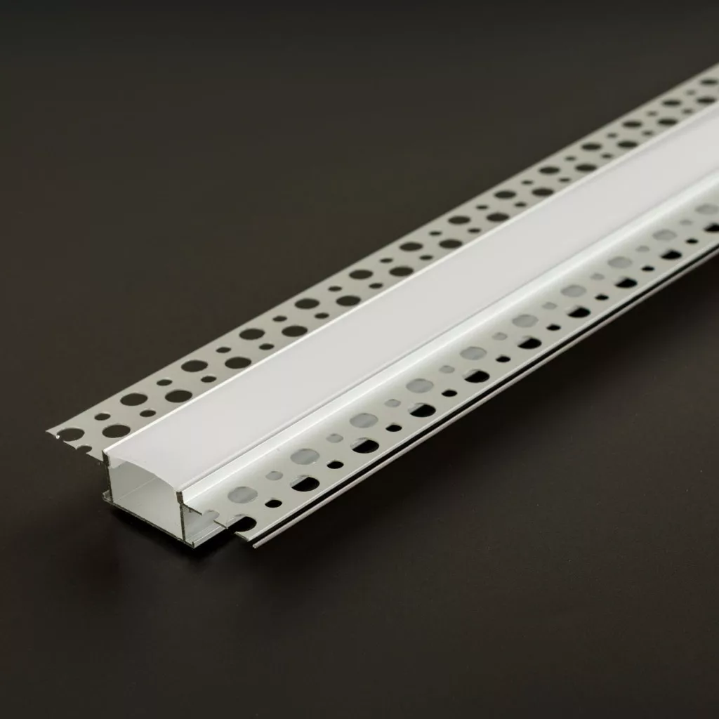 Tegye modernné és letisztulttá otthona vagy üzlete világítási megoldásait ezzel a vakolható, gipszkartonba süllyeszthető LED alumínium profillal! A prémium minőségű sín segítségével a LED szalagok elegánsan elrejthetők a falban vagy mennyezetben, így csak az egyenletes, dekoratív fény jut érvényre – zavaró kábelek és szerelvények nélkül. A profil oldalain található perforált fülek lehetővé teszik, hogy a gipszkartonhoz vagy vakolathoz rögzíthető legyen, majd teljesen eltűnjön a felületben. Opál burája finoman szórt fényt biztosít, és csökkenti a LED pontszerű világítását, ezáltal homogén, esztétikus fénycsík hozható létre.