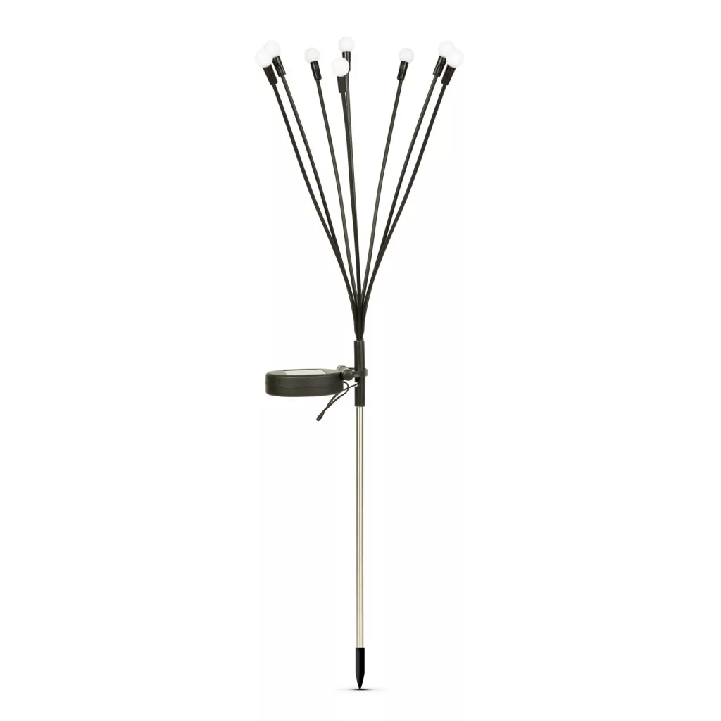 Varázsolja kertjét mesés környezetté ezzel a napenergiával energiával működő, leszúrható kerti lámpával! A gömb végű lámpák meleg fényükkel megidézik a szentjánosbogarak varázslatos világát, így egyedülálló hangulatot teremtenek a sötétedés után. Használhatja irányfényként vagy dekorációként is. Amint besötétedik, a lámpa automatikusan bekapcsol, napkeltekor pedig kikapcsol. Napközben a szolárcellák a napenergiát árammá alakítják és az akkumulátorban eltárolják. Egyszerűen telepíthető, nincs szükség vezetékekre – csak szúrja le a földbe, és élvezze a természetes, lágy megvilágítást a kertjében. Tökéletes választás utak, virágágyások vagy teraszok díszítésére.