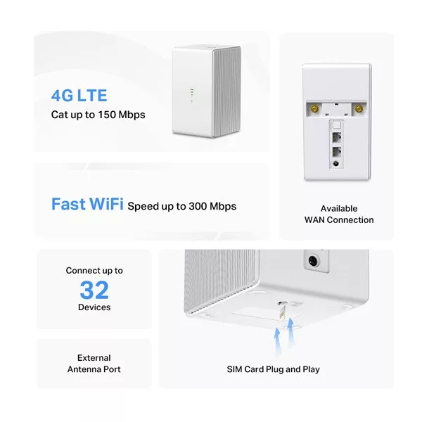 Mercusys MB110-4G 300 Mbps vezeték nélküli fehér N 4G LTE router