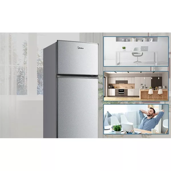 Midea MDRT294FGE50 ezüst, felülfagyasztós, Hűtő:163L, Fagyasztó:41L, No frost hűtőszekrény