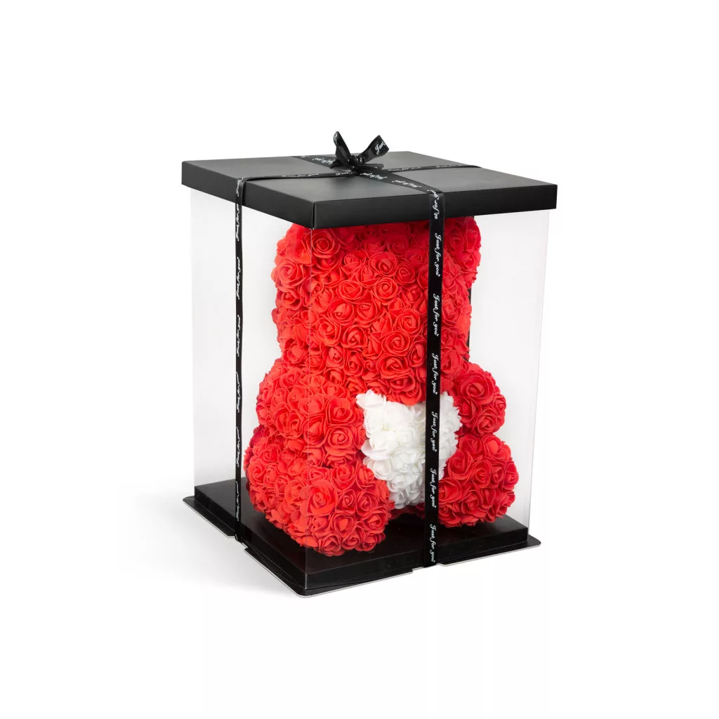 Lepje meg szerettét egy különleges ajándékkal! Ezzel a díszdobozos rózsa macival felejthetetlen lesz az ünnep, legyen szó ballagásról, évfordulóról, eljegyzésről, karácsonyról vagy akár születésnapról, névnapról. A rózsa maci hasonlóan, mint az örökrózsa nem hervad el, így egy életen át tartó emlék marad szerettének. Dekorációként is használható doboz nélkül, vagy akár dobozával is. Ékes dísze lehet nappalijának, hálószobájának. Különböző méretben és színösszeállításban kapható.