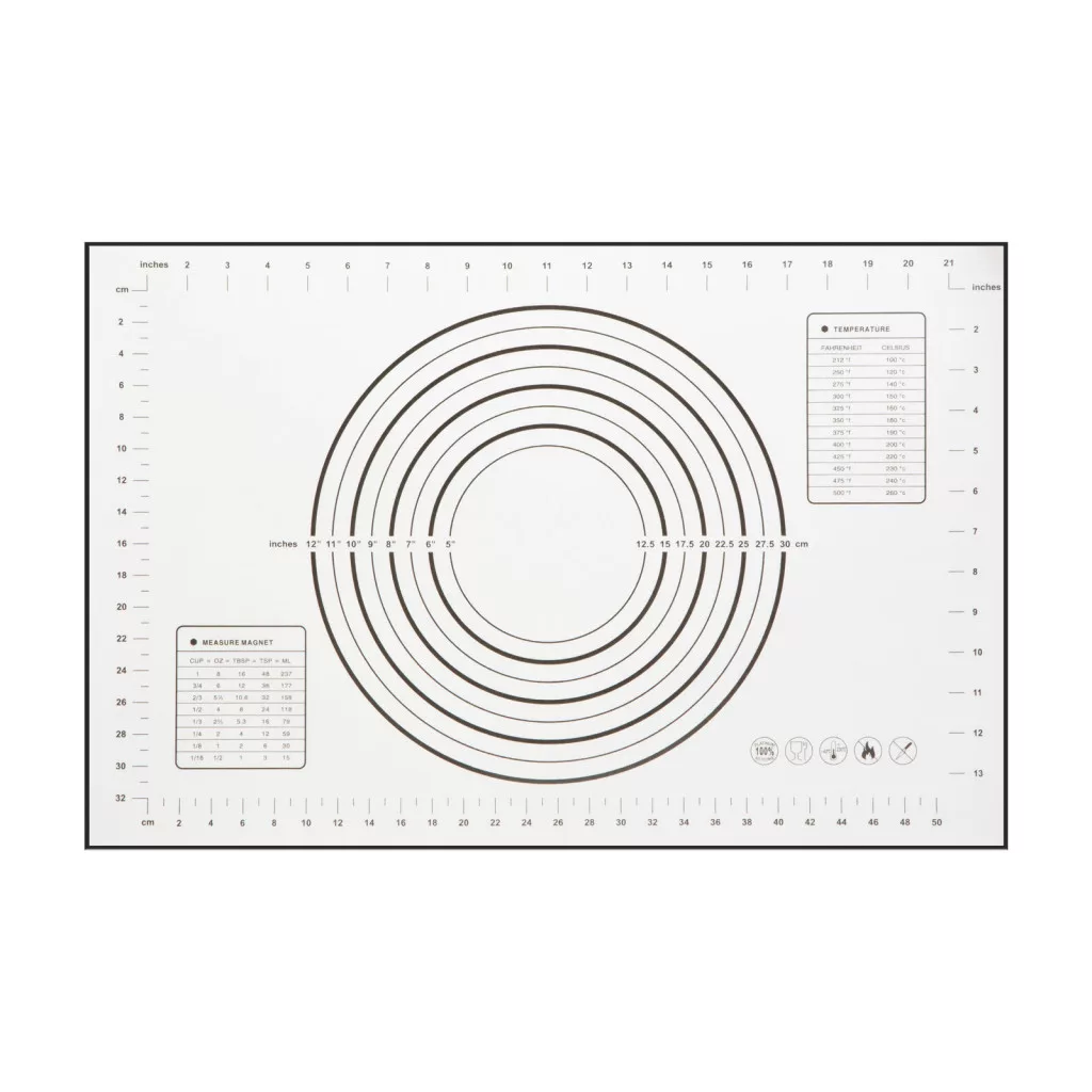 Szilikon nyújtólap - mérettáblázattal - 60 x 40 cm