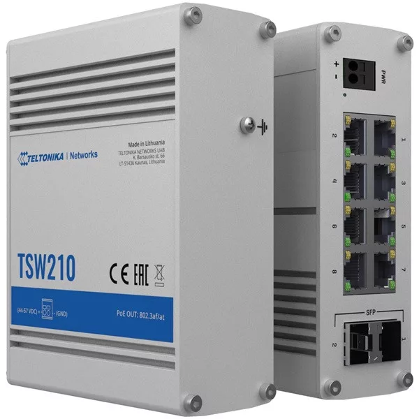 Teltonika TSW210 8x GbE LAN 2x SFP port nem menedzselhető switch