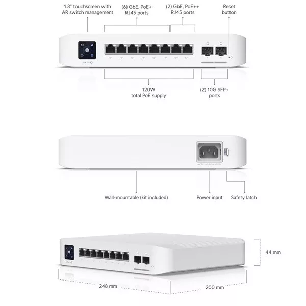 Ubiquiti USW-Pro-8-PoE 8port GbE LAN 6xPoE/PoE+ 2x PoE++ 2xSFP+ port 120W port L3 menedzselhető switch