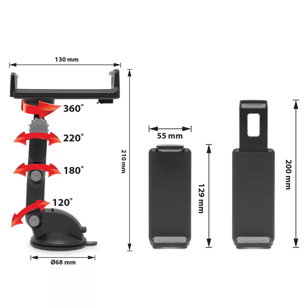 Telefonhoz, gps-hez, tabletekhez is használható, befogadóméret: 12 - 18 cm.