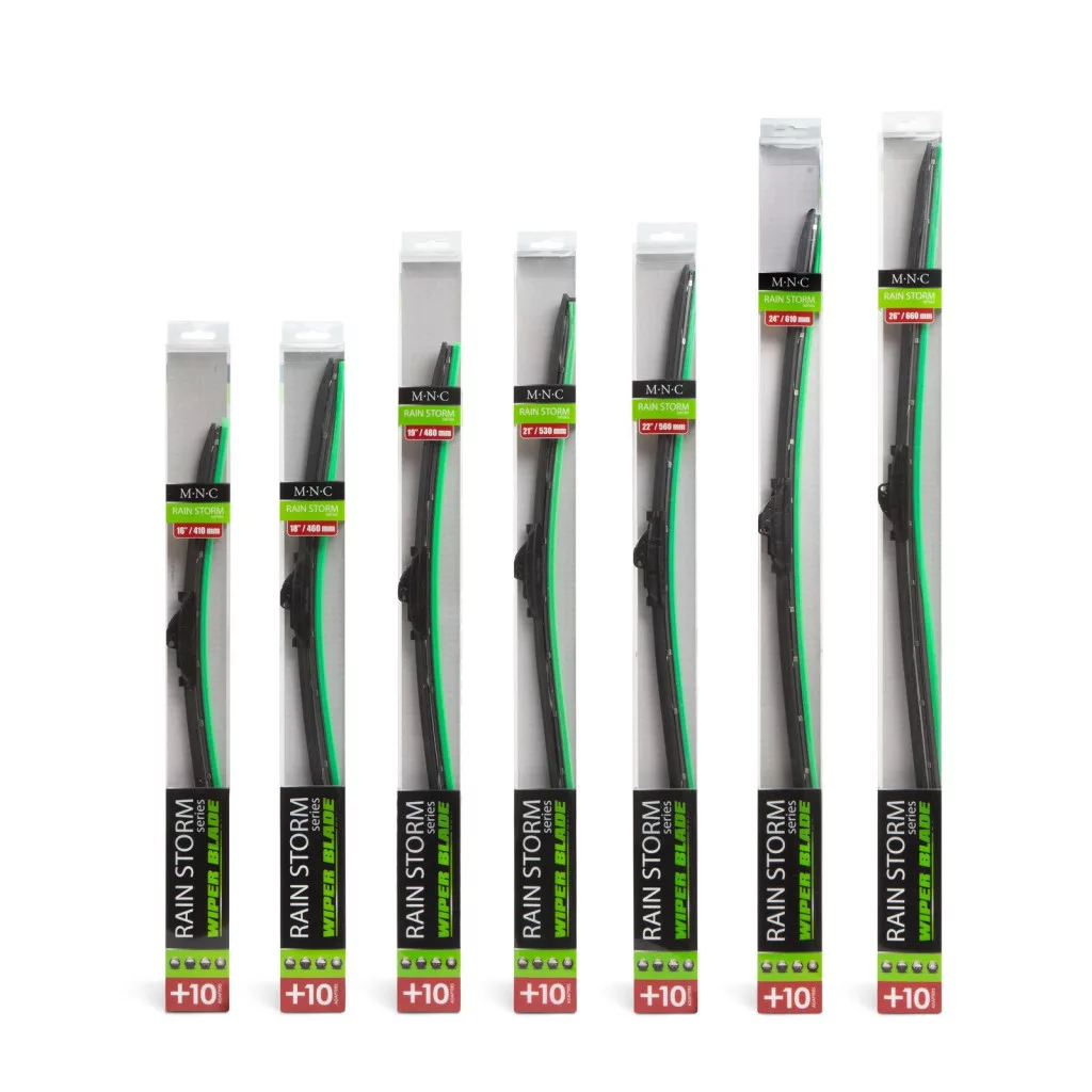 Az MNC ablaktörlőivel nehéz időjárási körülmények között is biztonságosan vezethet, legyen szó bármilyen csapadékról a RainStorm ablaktörlők biztosan megbírkóznak a feladattal. Az ablaktörlő lapát gumiprofilja úgy lett kialakítva, hogy a legnagyobb csapadékmennyiség esetén is folt és csíkmentesen töröljön, ezzel biztosítva maximális kilátást a gépjárműből. A lapátba épített rugósín rányomja a törlőfelületet a szélvédőre, ezzel biztosítva a lapát teljes hosszán történő törlést, valamint hosszú élettartamot. A rugósínnek köszönhetően a lapát jobban ellenáll az időjárásváltozásnak, nem deformálódik extrém meleg vagy hideg hőmérséklet esetén sem.